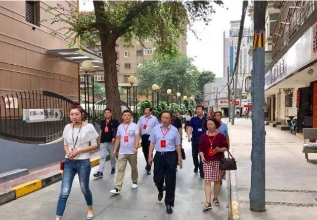 馮主任及市區(qū)人大代表一行首先來到酒泉路街道“巷往時光”城市管理一體化小街巷,并在街道講解員的詳細(xì)介紹下,全面參觀了解了酒泉路街道在結(jié)合轄區(qū)歷史文化的基礎(chǔ)上,通過統(tǒng)一門頭、統(tǒng)一標(biāo)示、硬化路面、捆扎電線等舉措,對小街巷改造所做的各項工作。