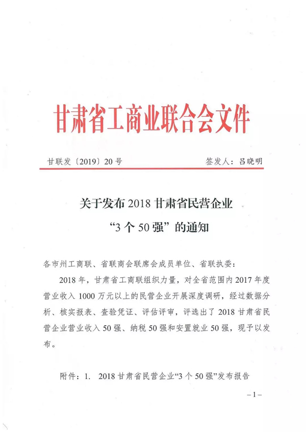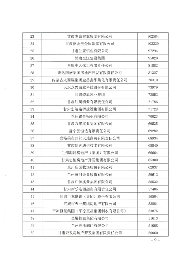 ★ 2018甘肅省民營(yíng)企業(yè)營(yíng)業(yè)收入50強(qiáng)榜單 ★