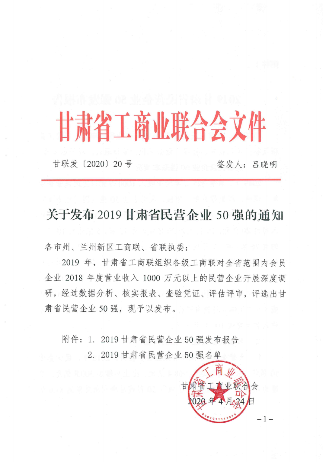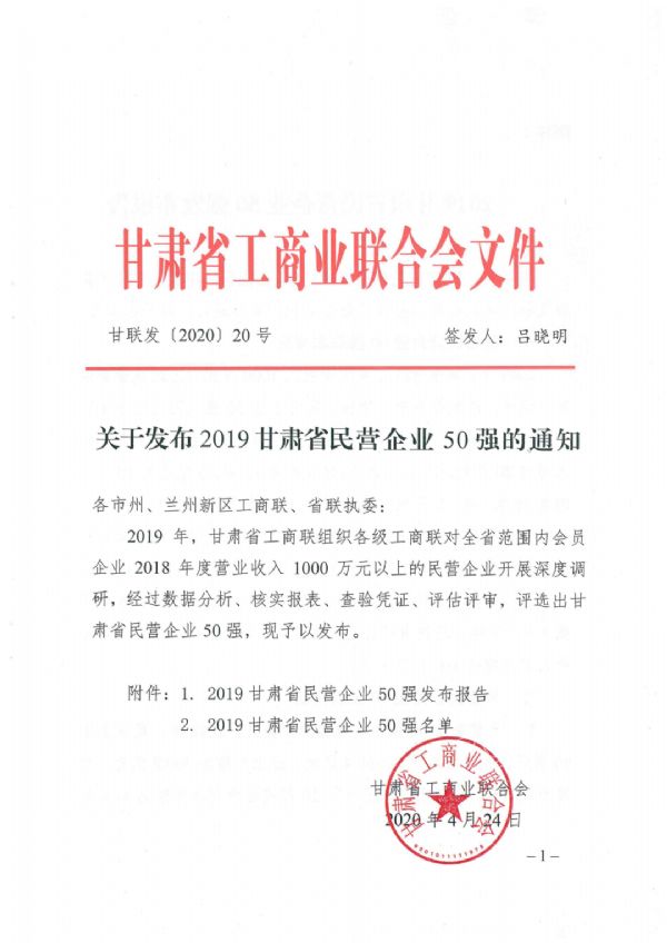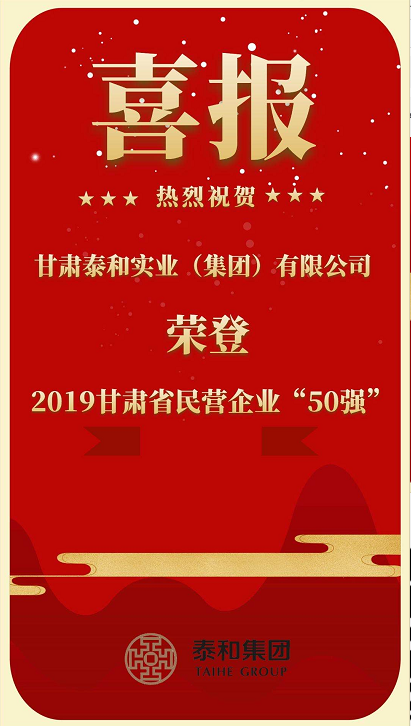 會議上,省工商聯(lián)發(fā)布了甘肅省2019年度民營企業(yè)營業(yè)收入50強(qiáng)榜單。甘肅泰和實(shí)業(yè)(集團(tuán))有限公司榮居2019年甘肅省民營企業(yè)營業(yè)收入50強(qiáng)第9位。