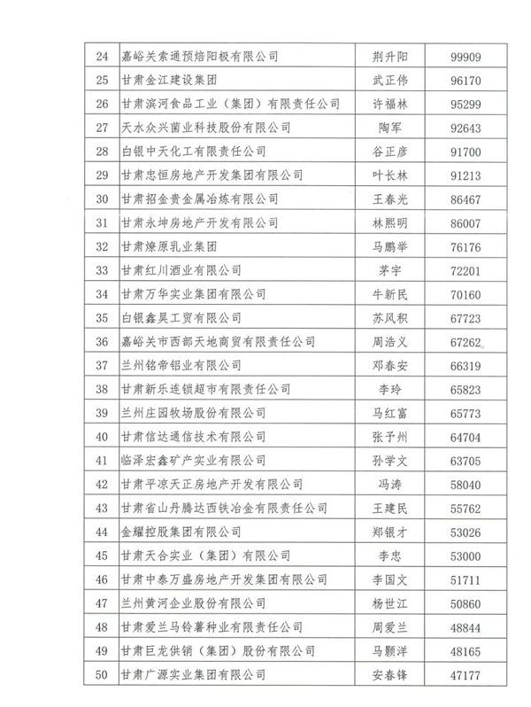 附:2019甘肅省民營企業(yè)50強(qiáng)名單